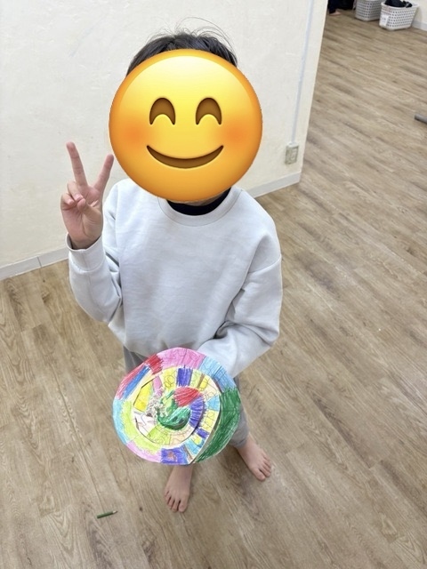 作った後は公園へ行きました。くるくる回る凧が出来ましたよ。