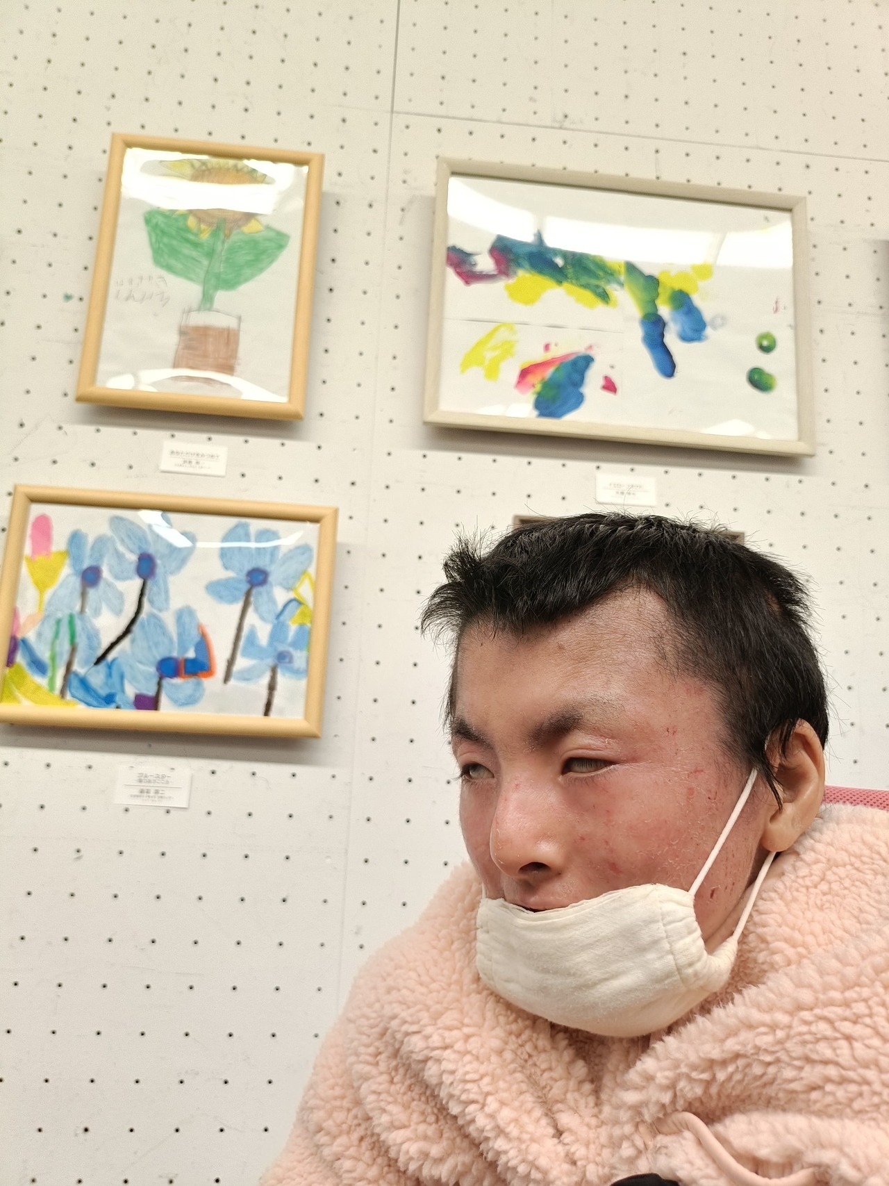ファクトリーでは、雨の日や室内活動の際に、絵を描いてきました。書き溜めた絵の中から、展覧会の絵を選びました。