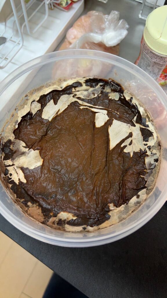 産膜酵母は食べても問題がないですが、食味が少し落ちるので薄く取り除くことをお勧めします。