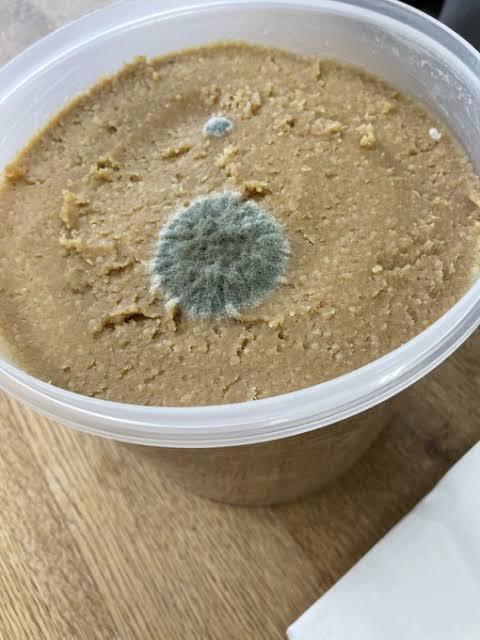 そもそもカビは「塩」に弱いのでお味噌の上には生えにくいものです。白いカビのように見えるのは「産膜酵母」です。産膜酵母は、耐塩性があって味噌の表面にまれに発生することがあります。参考までに産膜酵母の写真を載せます。お見苦しいですが、害になるものではないのでよく覚えておいて下さいね!