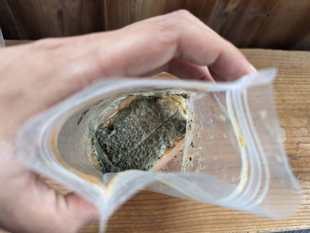 A:こちらはカビです!でも慌てないで。きちんと取り除けば大丈夫。